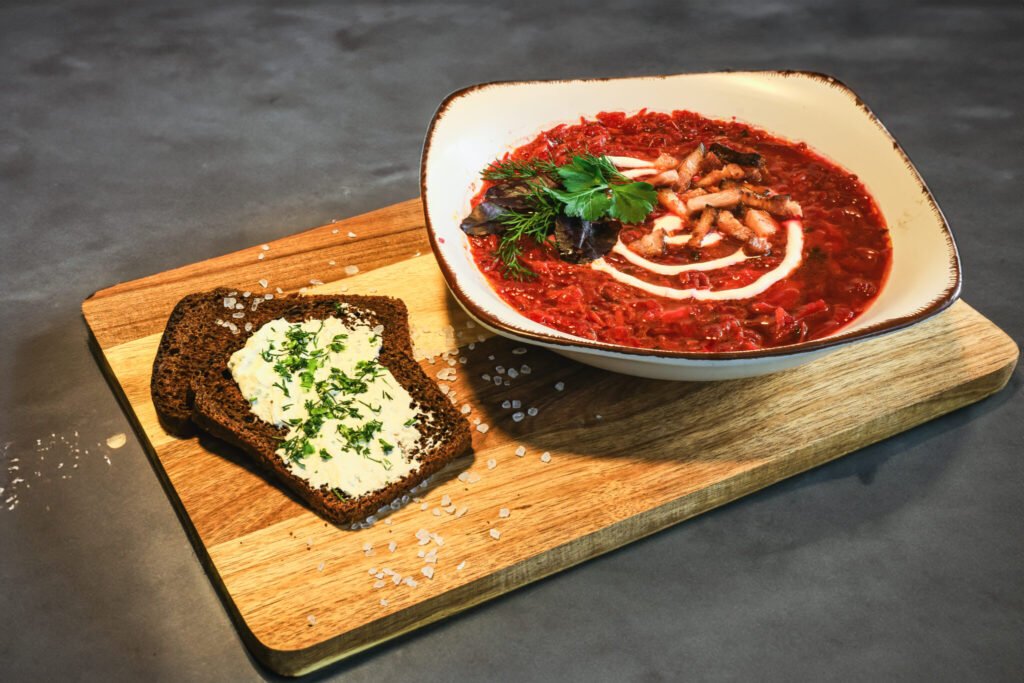 Suitsukalapelmeenid kanapuljongis koos tatrakrõbediku ja kevadise pestoga